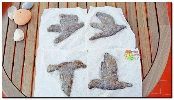 Después con la pasta de papel le vamos dando la forma a las aves.