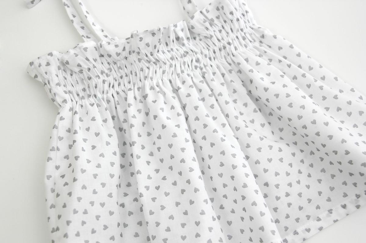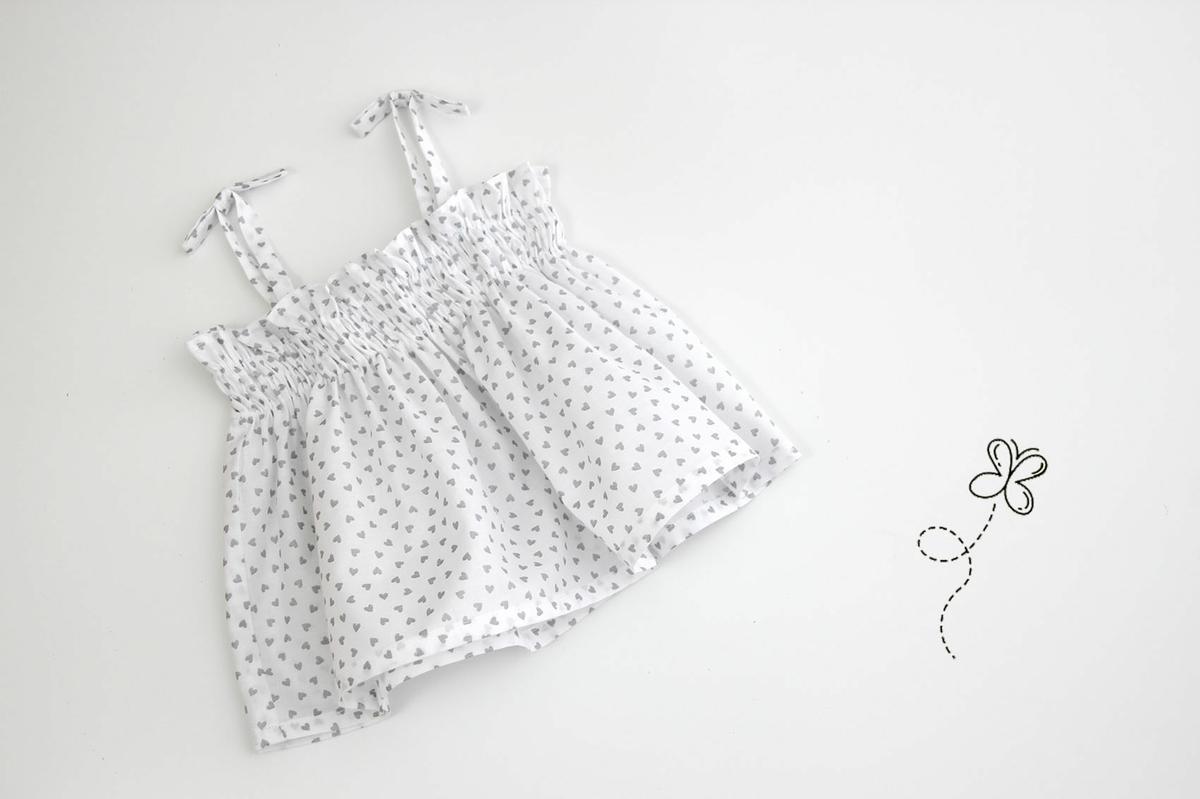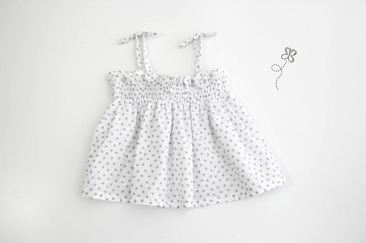 La tela que he utilizado es un voile de algodón, pero para este tipo de blusas podéis utilizar casi cualquier tipo de tela finita infantil: algodón, popelín, viyela, plumeti… esta en concreto la compré en Tiendatelas.com.