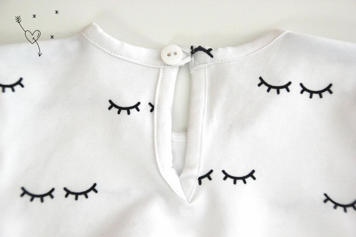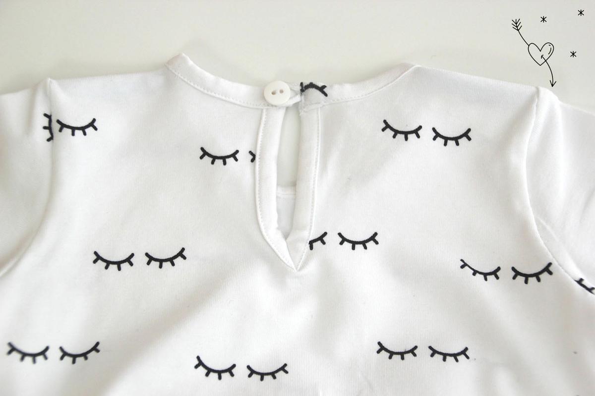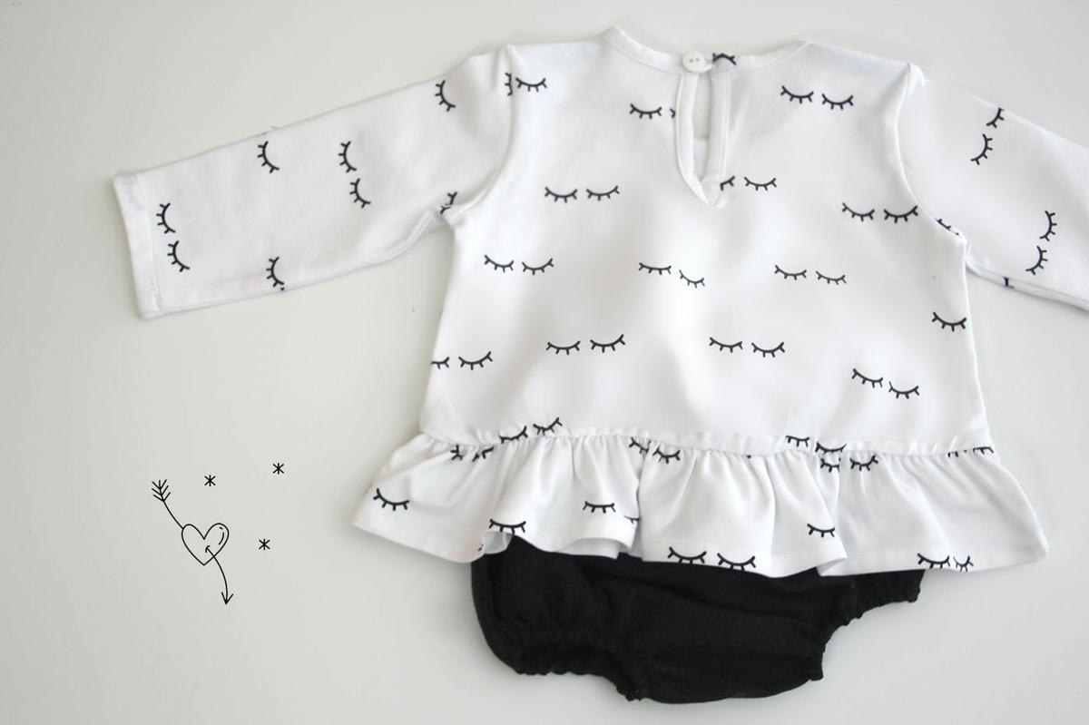 Para tallas 3 – 18 meses: 0,5 metros de tela tipo punto o jersey