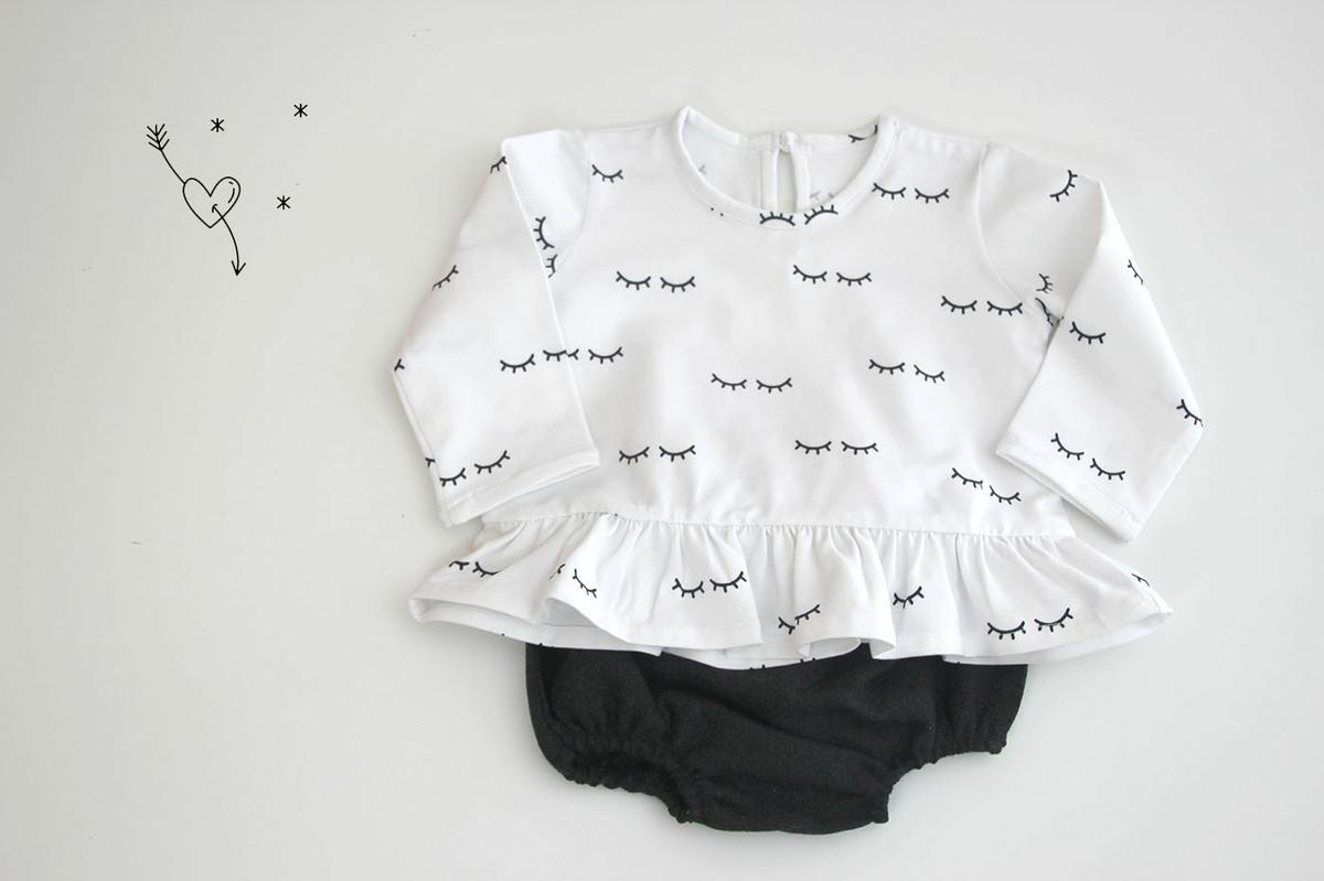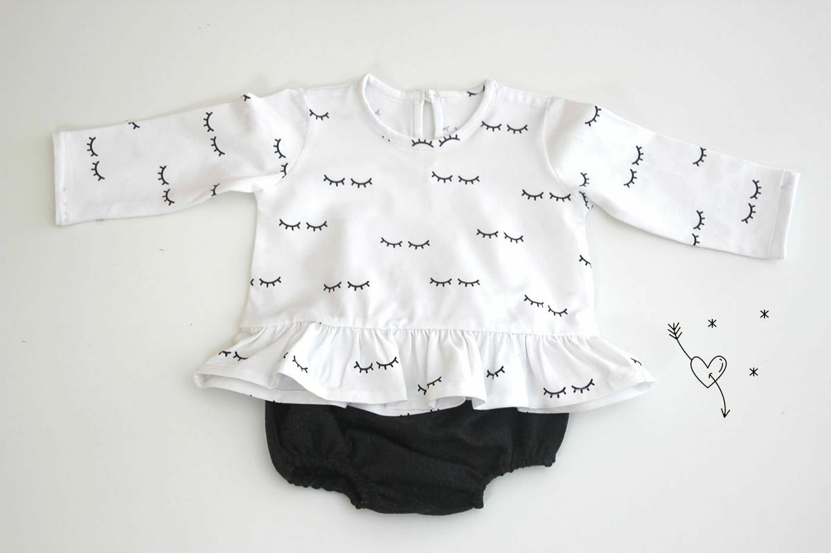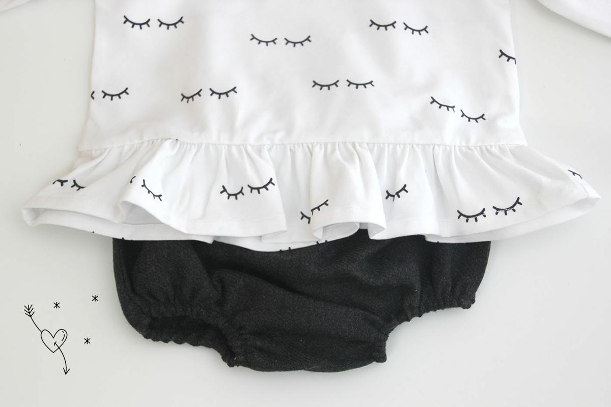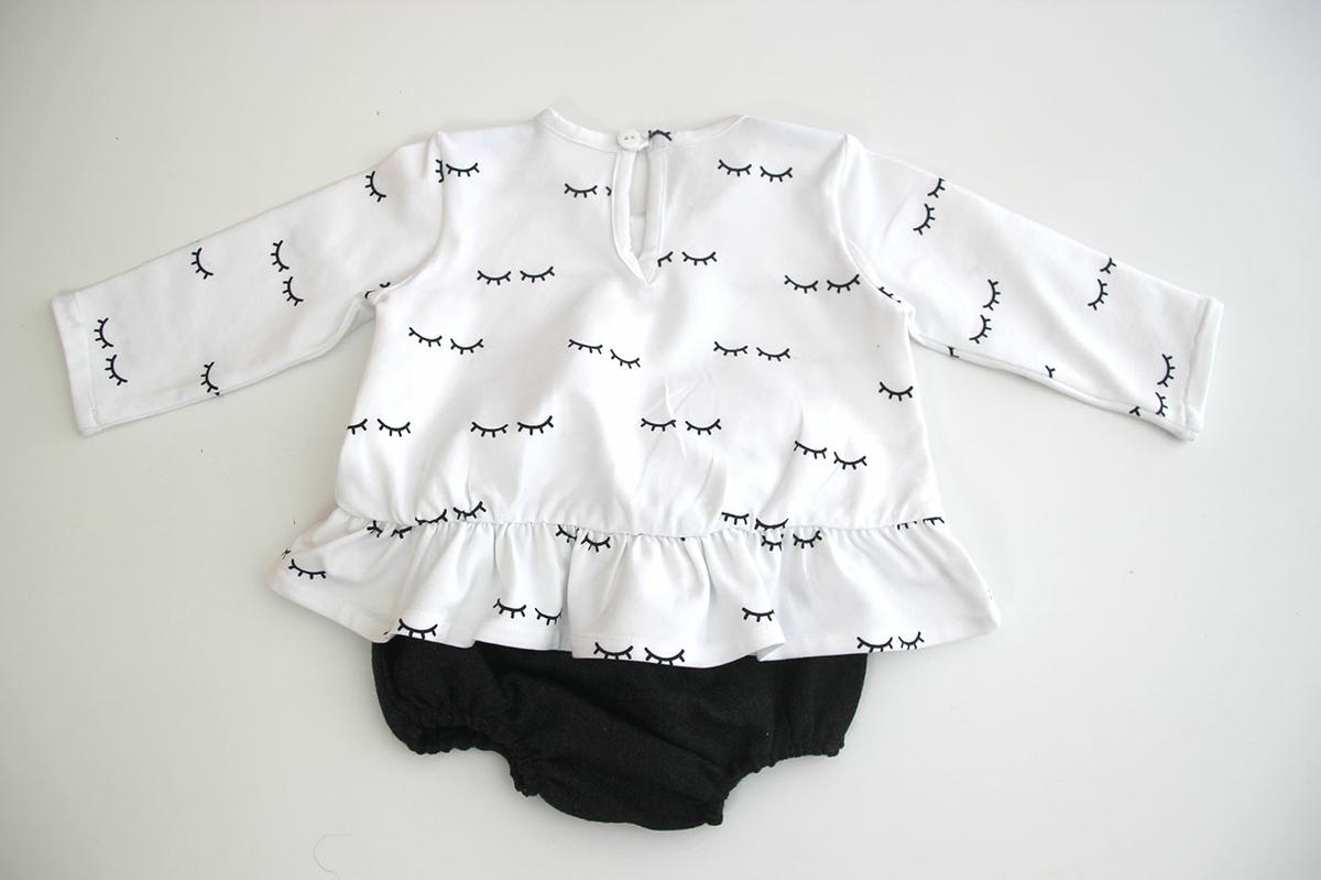 Para tallas 3 – 18 meses: 0,5 metros de tela tipo punto o jersey