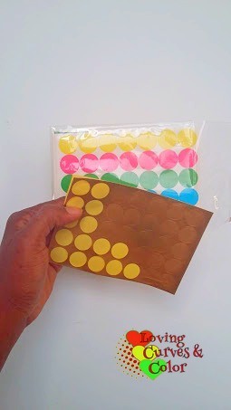 Conseguí unas pegatinas circulares pero no en el color que deseaba entonces le di pintura dorada en spray y deje secar.
