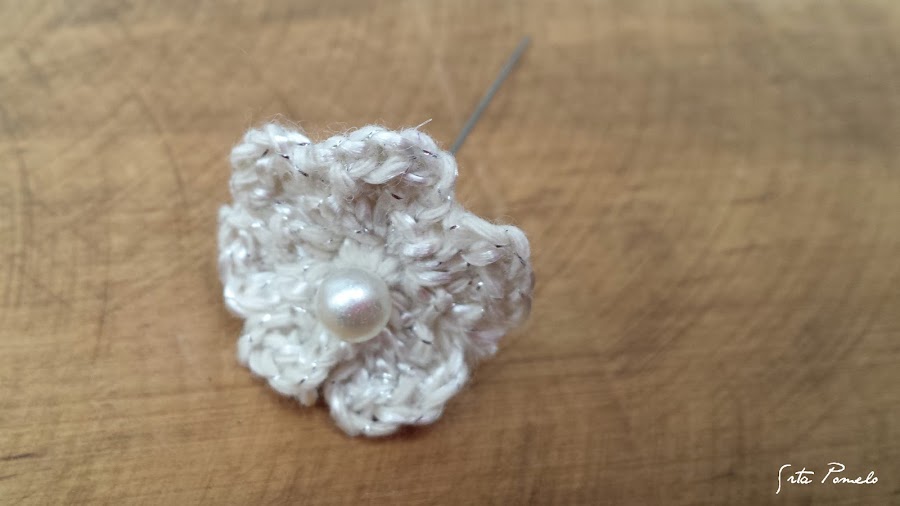 Insertamos el alfiler por el centro y listo. Florecillas acabadas adornando el alfiler...