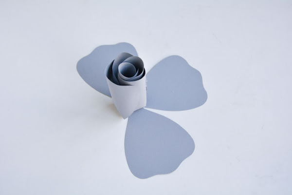Pegamos también a la base los otros cuatro pétalos que nos quedan y los doblamos en el orden que queramos. Yo lo he hecho enfrentados pero si los pegáis seguidos va a quedar igual de bonito.