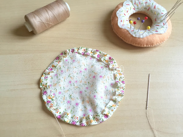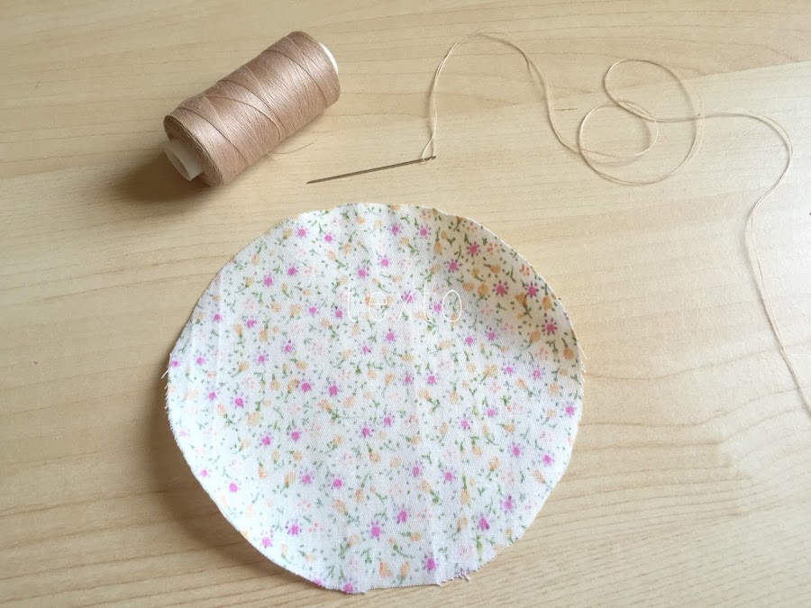 Cosemos un dobladillo alrededor del círculo de medio centímetro, hilvanando con aguja e hilo.