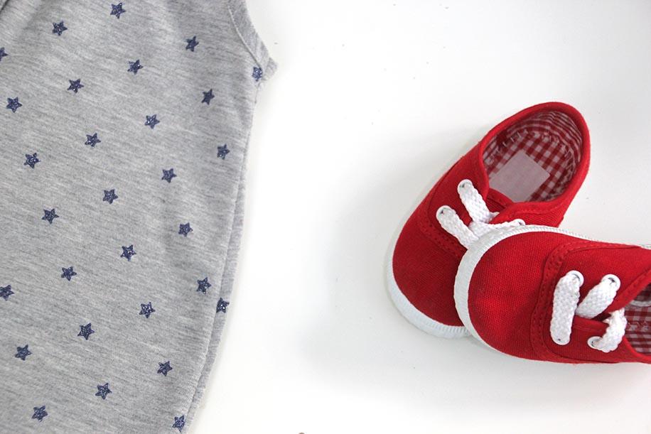 La tela que yo he utilizado es de tipo punto o jersey de algodón!! Una tela perfecta para las prendas de bebés como pijamas, monos, bodys…. además es perfecta también para camisetas y legins para niños. Esta tela la compré en TiendaTelas.com pero para telas de punto o jersey, mi tienda online favorita es MIMIDAE.