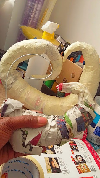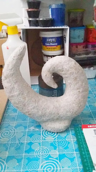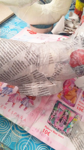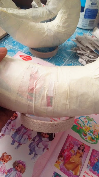 El rollo esta colocado así que toca forrarlo con cinta de carrocero y despues aplicamos la cartapesta a todo a pieza.