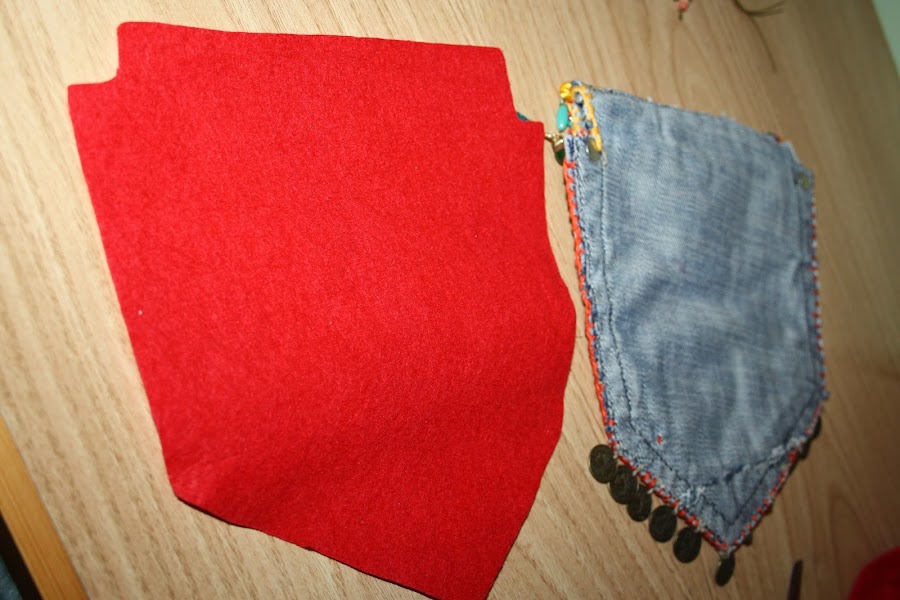A continuación cortamos un trozo de fieltro, medimos el bolso y cortamos una pieza del mismo tamaño.