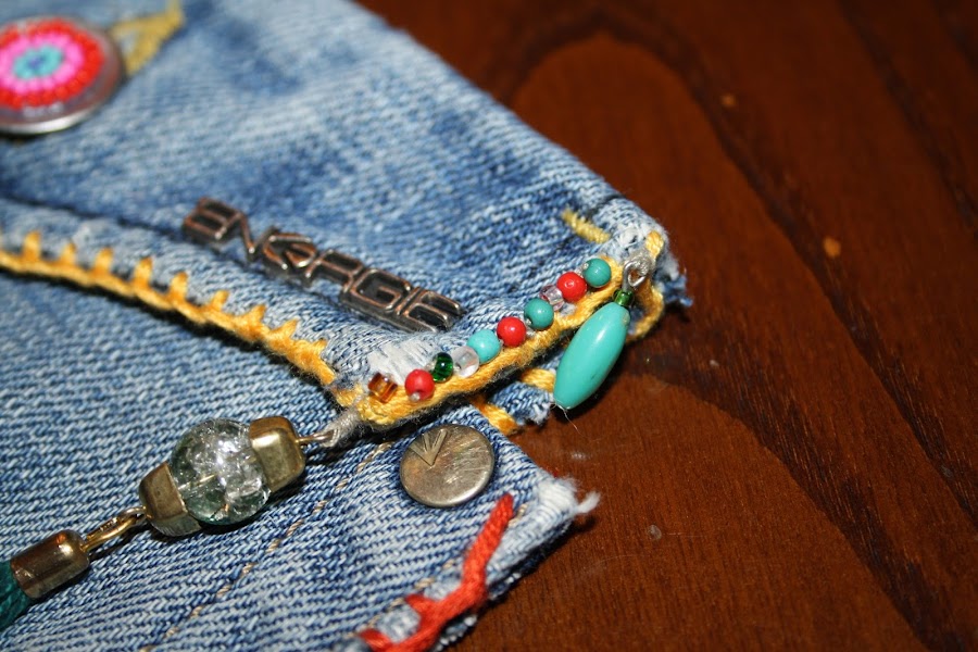 Después he decorado el botón pegándole un abalorio que tenía para darle ese toque hippie. Puede ser un botón vintage de tu abuela, una flor de tela o cualquier cosa que se os ocurra.