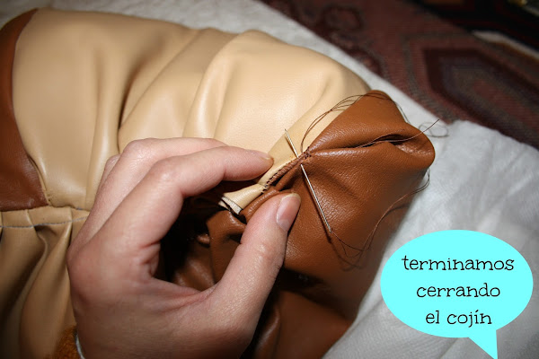 Metemos guata por la parte ancha y después terminaremos nuestro cojín rematando el hueco abierto con aguja e hilo.