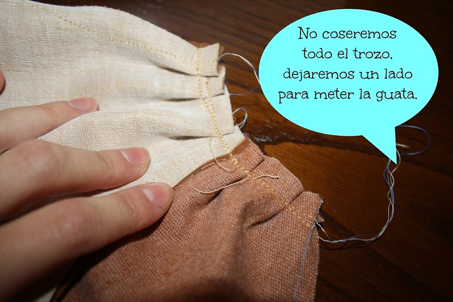 Haremos lo mismo con la parte ancha, sólo que dejaremos un pequeño hueco para introducirle guata.
