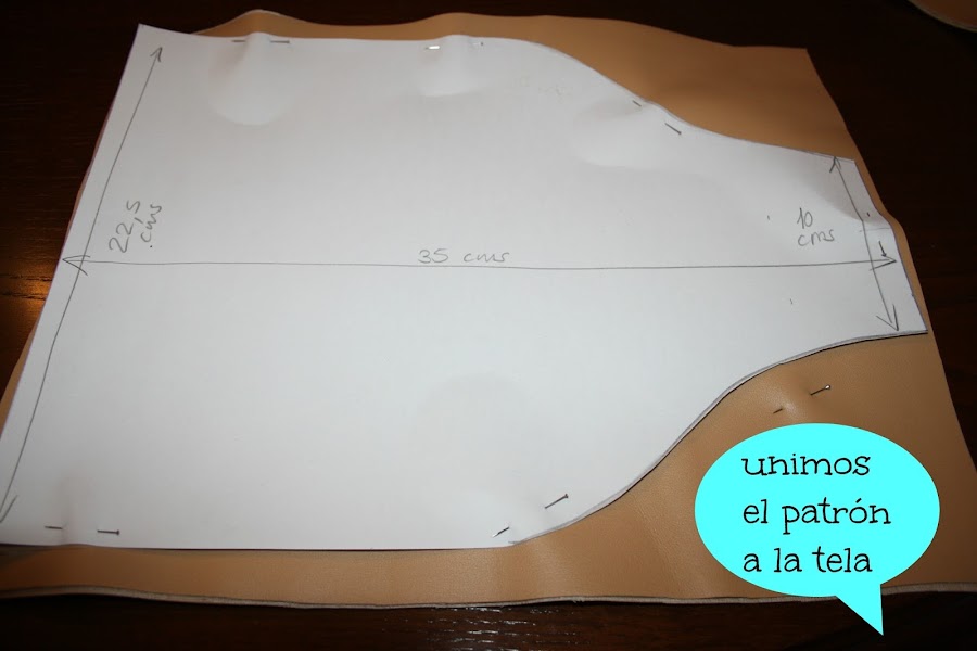 El patrón tendrá una parte estrecha y otra ancha como veis en la foto y las medidas serán de 35 cms de largo, 22,5 de ancho en la parte ancha y 10 cms en la estrecha.