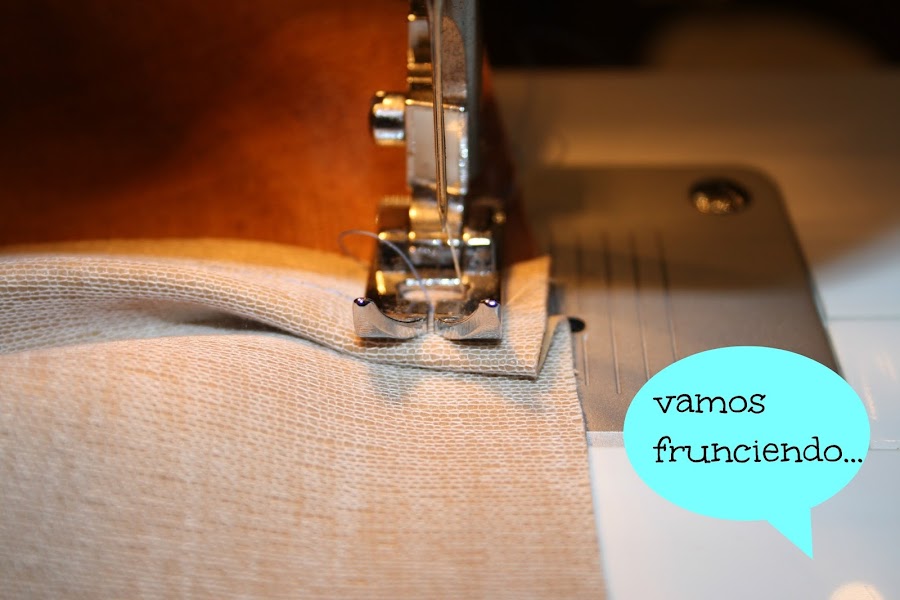 Empezamos frunciendo la parte estrecha, haciendo pequeños pliegues, de modo que cerremos la abertura.