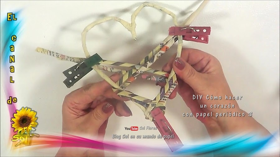Preparamos el alambre en forma de corazón y forrado con papel y cinta de carrocero,