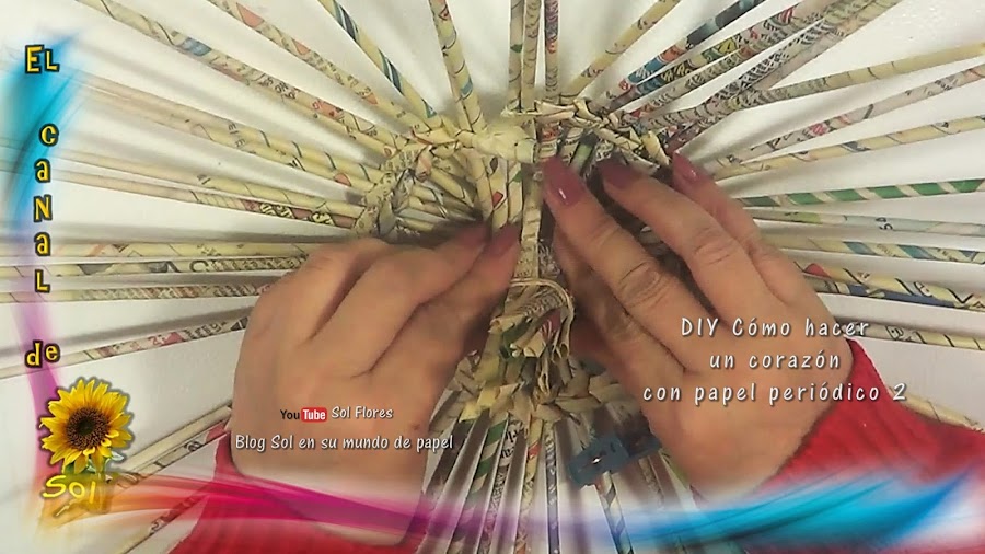 y volteamos al revés, ahora acomodamos muy bien todas las varillas, y marcamos de una vez la punta del corazón con un broche, sujetamos con una liga y luego con cinta de carrocero, que quede lo más ajustado posible, cortamos el excedente y le damos la forma a nuestro corazón.