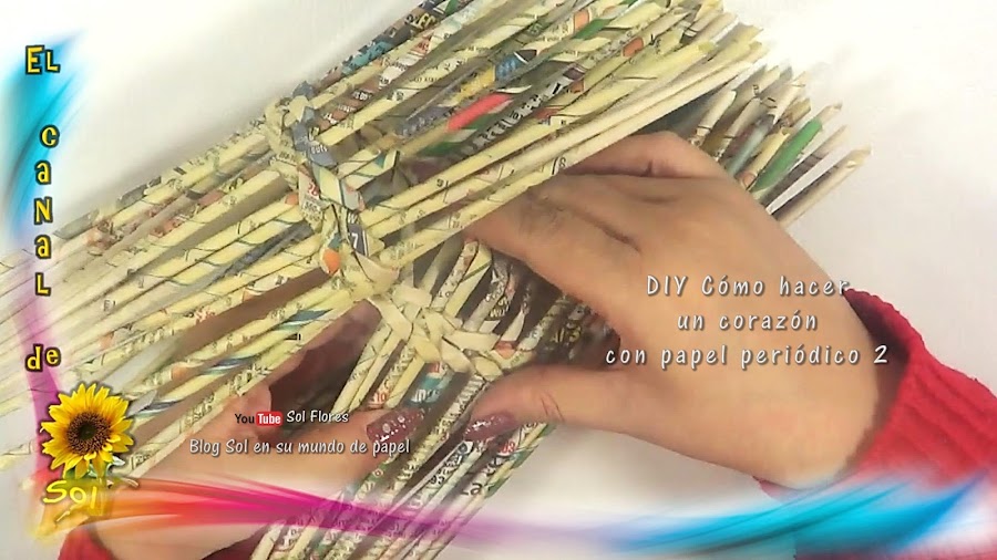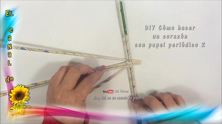 Hacemos las varillas con la mitad de una hoja de directorio telefónico o su equivalente en papel periódico y las enrollamos con una varilla normal, necesitamos 66 varillas, tomamos cuatro y las unimos con cinta de carrocero, dos arriba y dos abajo, levantamos las dos varillas de arriba y colocamos dos varillas procurando que queden a la mitad,