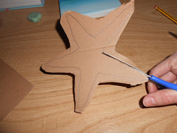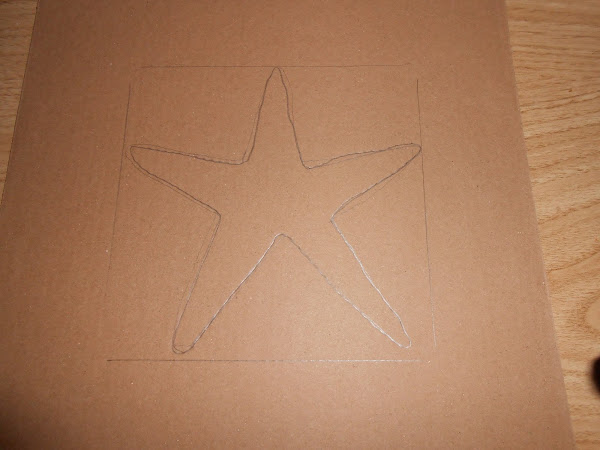 Después medimos el tamaño del lienzo y dentro del cartón dibujamos una estrella de mar.