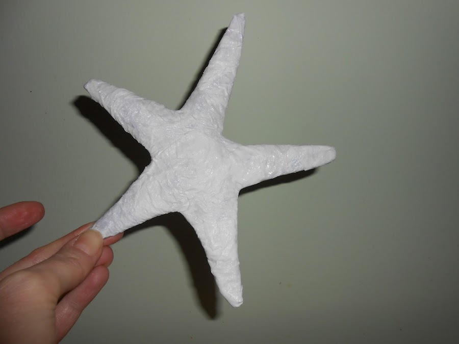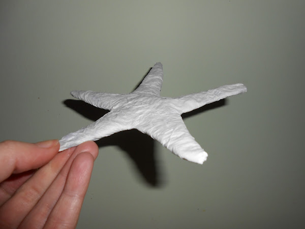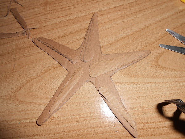 Añadimos pequeños trozos de cartón por encima de la estrella para darle volumen, sobre todo en el centro de la misma y por el ancho de las patas.