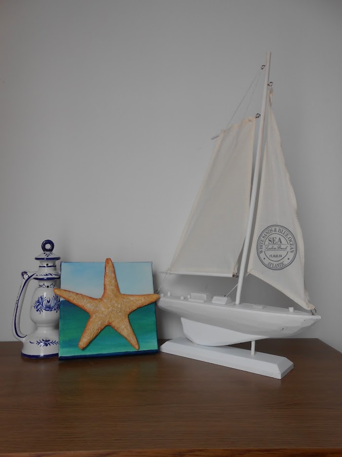 Llevaba tiempo que me apetecía hacer algo de este estilo pero no acababa de saber el qué. Y son ese tipo de cosas que se te ocurren de repente, como es el caso de este cuadro con una estrella de mar, que es nuestro Diy de hoy.