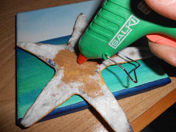 Podéis usar un lienzo más grande y crear una miniplaya con una estrella como esta, con conchas de playa, arena, etc. Dejad volar vuestra imaginación, porque a cada uno se nos puede ocurrir una cosa distinta.