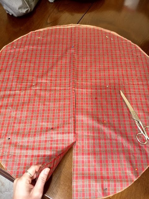 Marcamos con alfileres y cortamos por la línea marcada. También haremos un corte desde el centro del círculo hasta un extremo.