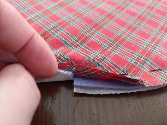 Lo primero que haremos será superponer todas las telas teniendo en cuenta que daremos la vuelta una vez cosido el borde.