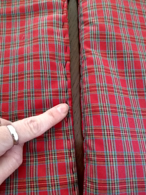 Damos la vuelta al trabajo y ahora sólo tenemos que cerrar la costura central. En este caso usé aguja e hilo (antes hilvané para sujetar bien las capas de tejido).