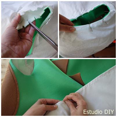 Paso nº 3 Forro. DIY Disfraz dinosaurio niños.