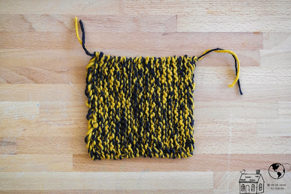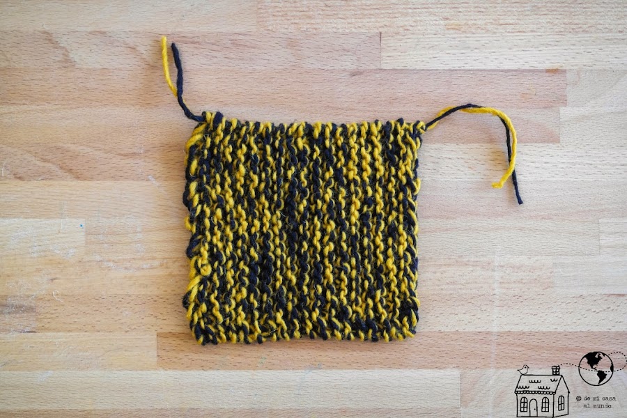 Para saber que ya has tejido un cuadro lo único que tienes que hacer es ir doblando la labor de vez en cuando en diagonal hasta que una vez doblado queden dos triángulos iguales a cada lado.
