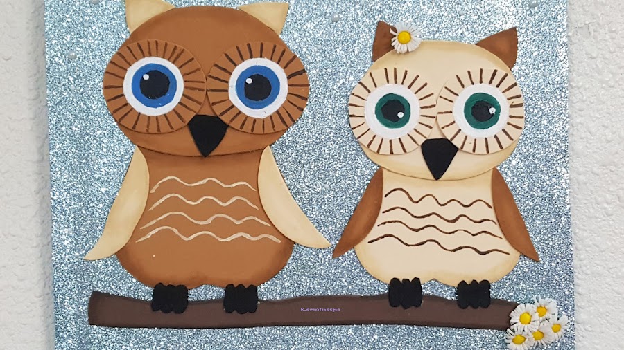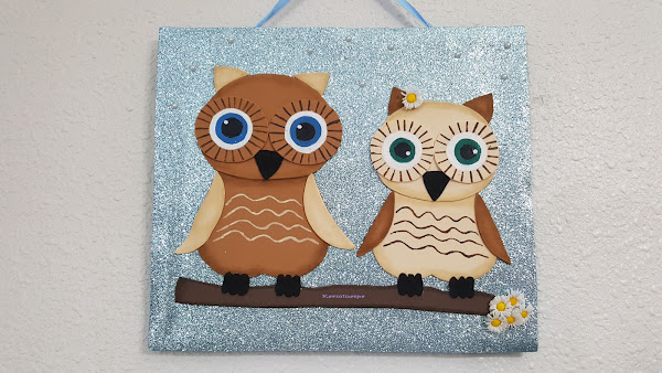 ¿A que son un amor?, este es el regalo de Reyes que le he hecho a mi madre, porque le encantan los búhos y he elegido ese color de fondo porque su habitación es en tonos azules.
