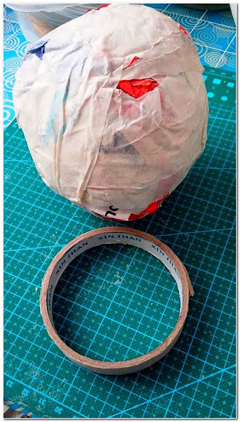 Esta circunferencia la recorte al tamaño original de la base y le di cartapesta a todo el muñeco y deje secar.