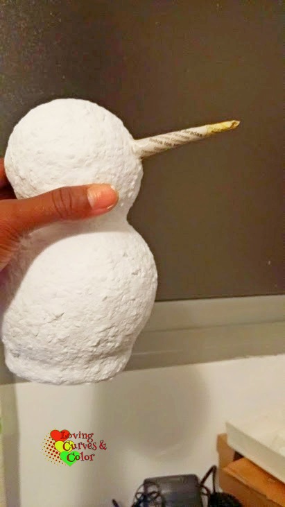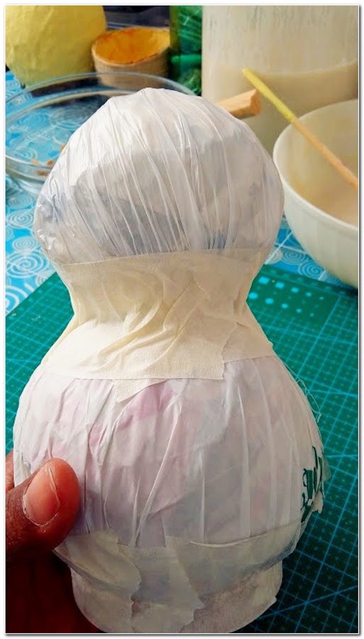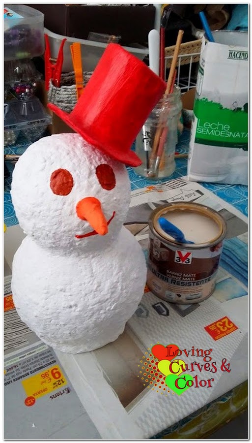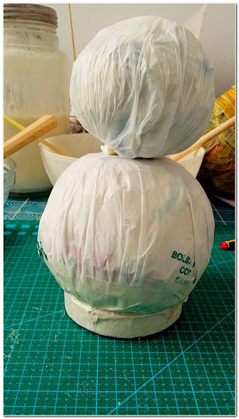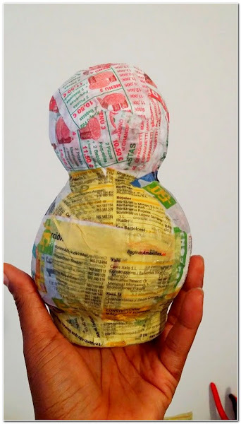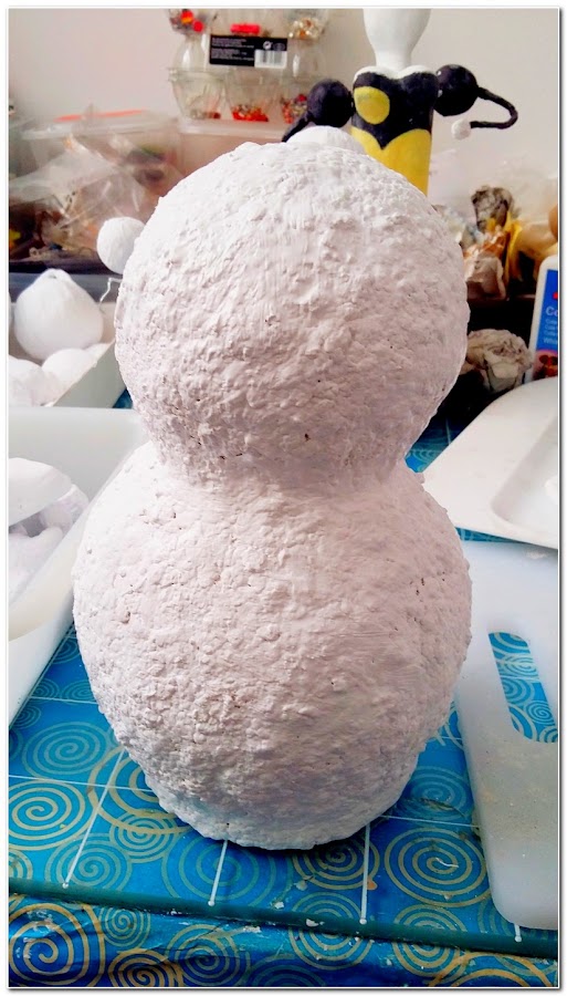 En el paso siguiente al cuerpo del muñeco le puse pasta de papel, pero la foto al parecer la he borrado, sorry☺☻... ya en esta foto le había añadido la pasta de papel y lo había pintado (2 manos de pintura).