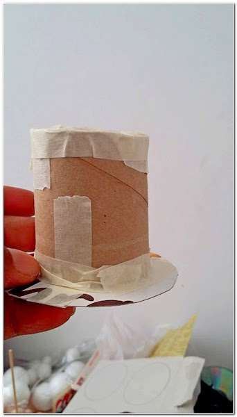 Para el sombrero del muñeco lo que utilice fue la mitad del tubo vacío del rollo de papel higienico y con la misma caja de muesli que use antes e hice otra circunferencia para hacer la base del sombrero, lo uní todo con cinta carrocero