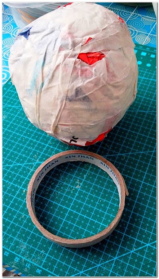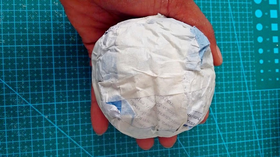 Lo primero que hago es hacer bolas con papel (yo prefiero hacer estas con papel de revistas) cuando tengo las bolas del tamaño que deseo las envuelvo en plástico, les doy forma y cuando ya tienen la forma que quiero las envuelvo con cinta de carrocero.