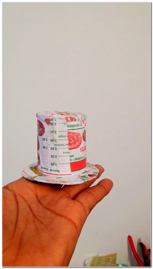 A una caja de cartón de muesli le corte un a circunferencia y le cerré la base, la pegue con cola blanca y deje secar.