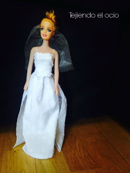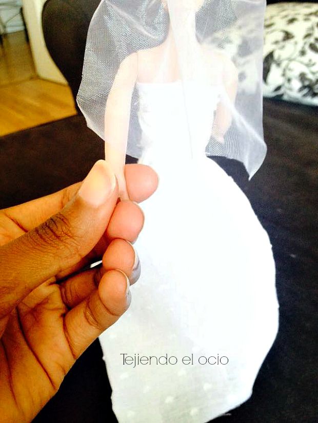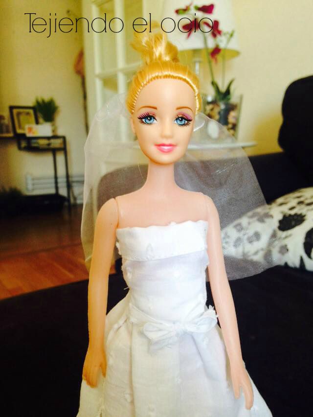 Para el velo he usado un poco de tul que he atado al pelo de la barbie con algo de cinta.