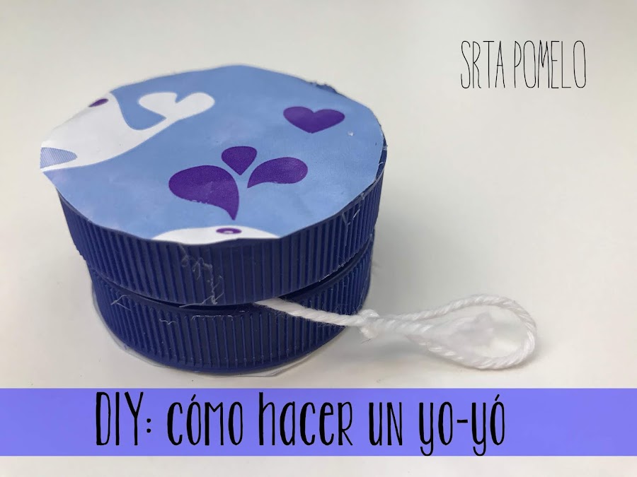 Buenos días de lunes pomelillos. Hoy os quiero enseñar una manualidad muy fácil de hacer con niños...crear juguetes con materiales reciclados. En este caso hemos reciclado dos tapones de garrafa, que son un poco más grandes que los de botella, y hemos hecho un yoyó. Es muy sencillo de hacer y los materiales son fáciles de encontrar por casa.