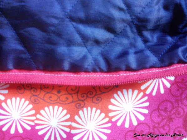 Cosemos con un pespunte sencillo la cremallera a la tela y ya tenemos nuestra bolsa casi terminada. Sólo nos queda unir el forro de guata a la bolsa. Yo he realizado este paso a mano, para que así la costura quedase invisible.