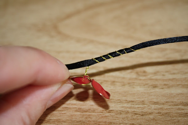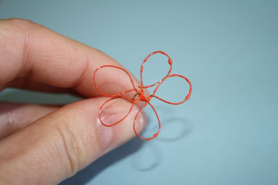 Iremos doblando el alambre sobre si mismo haciendo la forma de pétalos de una flor, hasta conseguir hacerla completa. Os recomiendo que dejéis un poco de alambre a modo de tallo para hacer la corona.