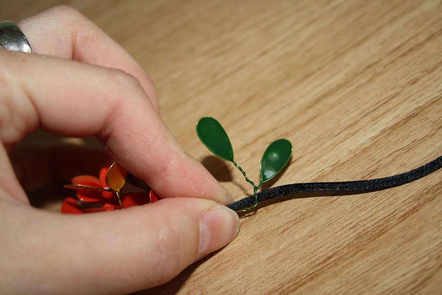 Podemos hacer la corona con o sin hojas. Si os apetecen como a mi, habrá que hacerlas previamente y después engancharlas a la cola de ratón.