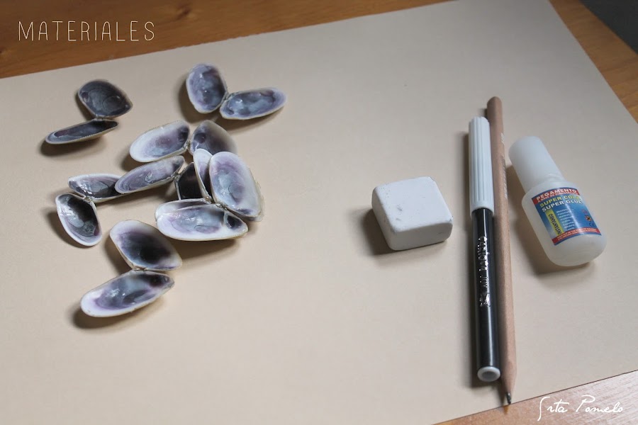 NOTA: las conchas las he limpiado y lavado concienzudamente para eliminar cualquier resto orgánico. Después las he secado bien con papel de cocina.