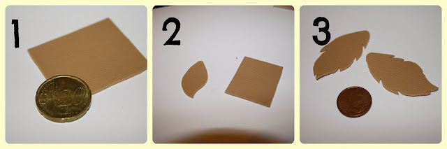 Quise hacer unos pendientes de pluma pero sin ellas y de paso experimentaba con el tejido de polipiel, que aún no lo había trabajado.