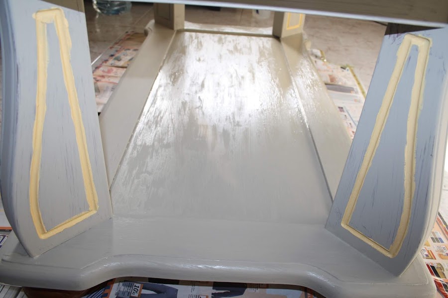 Tras pintar, le damos un lijado suave hasta levantar la capa que hemos pintado por algunos sitios, como vais a ver a continuación.