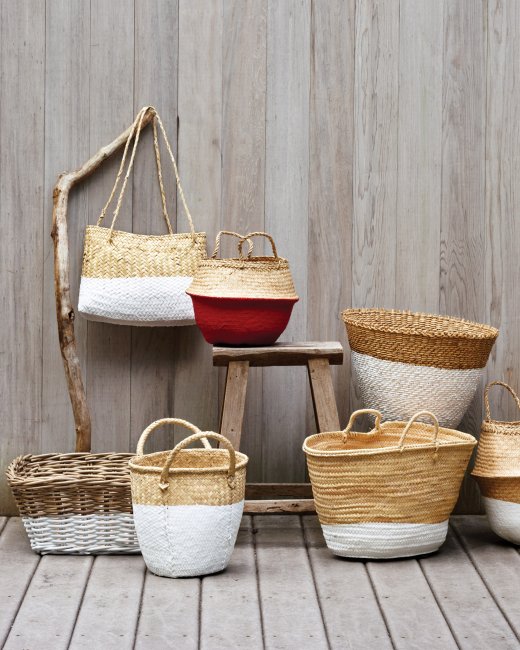 Capazo pintado con pintura al látex con base de agua vía Martha Stewart