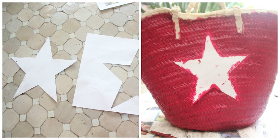 ♥ Con la pintura blanca, volvemos a pintar por encima de la estrella y pintamos la parte de arriba del cesto.