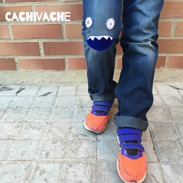 Hola a todos... con la llegada del frío, en casa también ha llegado los agujeros en los pantalones de los niños, y el comprar rodilleras para pegar a los pantalones. Pero no os pasa que las rodilleras se os despegan. Yo he probado a coserlas, pero con la máquina no quedan muy bien, así que he realizado estos parches que además de corregir el roto, son un motivo de decoración con un resultado final muy divertido para el pantalón.