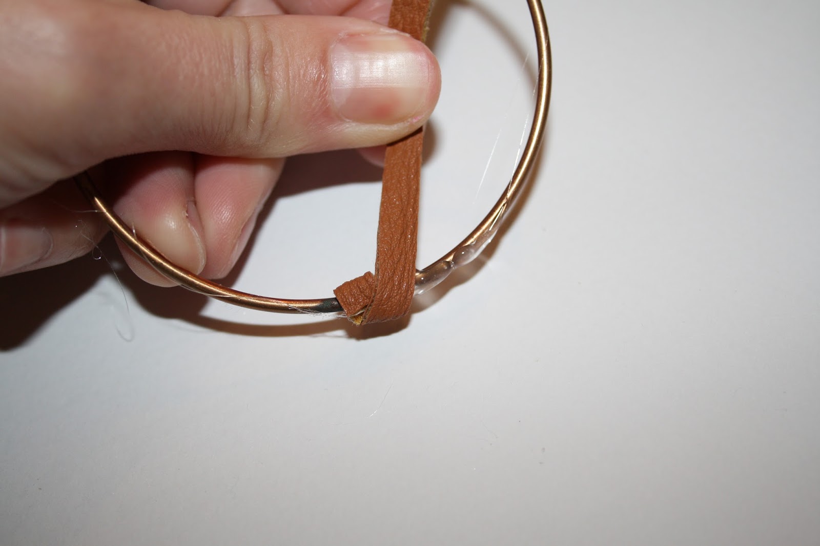 Pasamos el hilo a 2 cms más o menos por encima del aro, lo sacamos por el hueco que queda y giramos el hilo a la izquierda. Tensamos.
