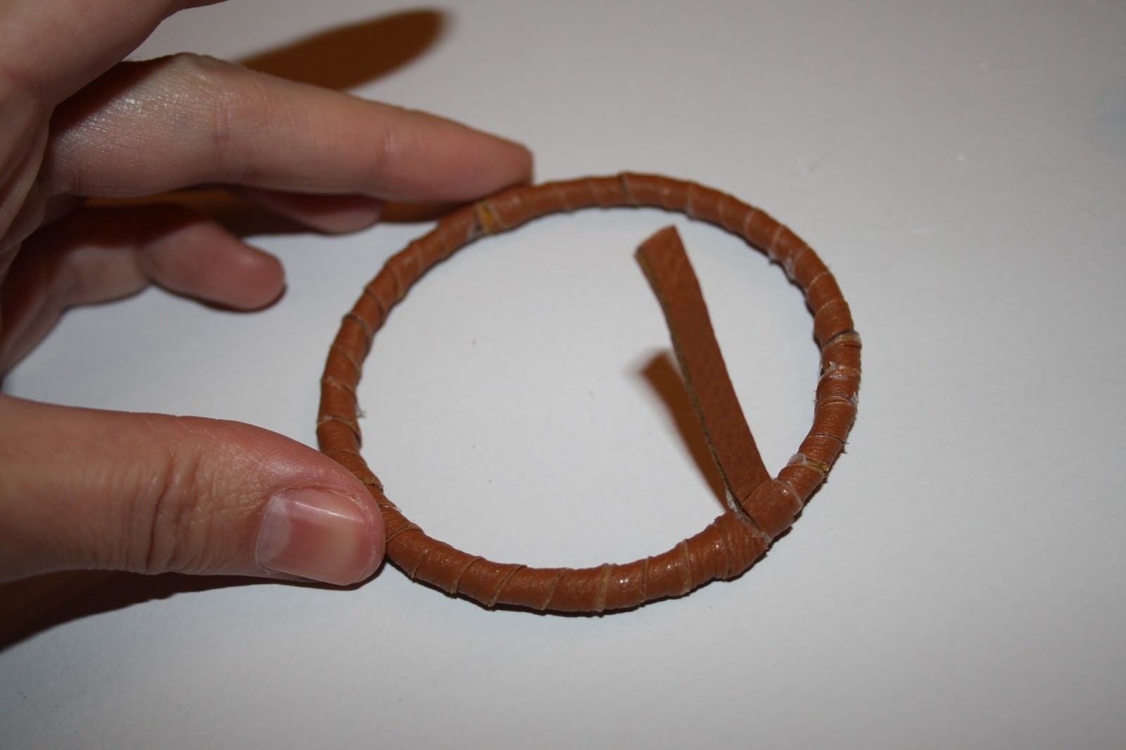 Cogemos la pulsera y vamos enroscando la cinta a la vez que la vamos tensando y aplicando silicona sobre la misma. Lo vemos en las siguientes fotos.