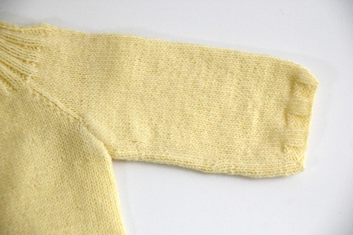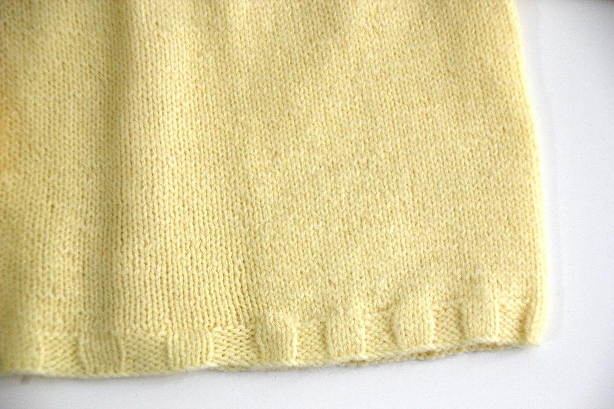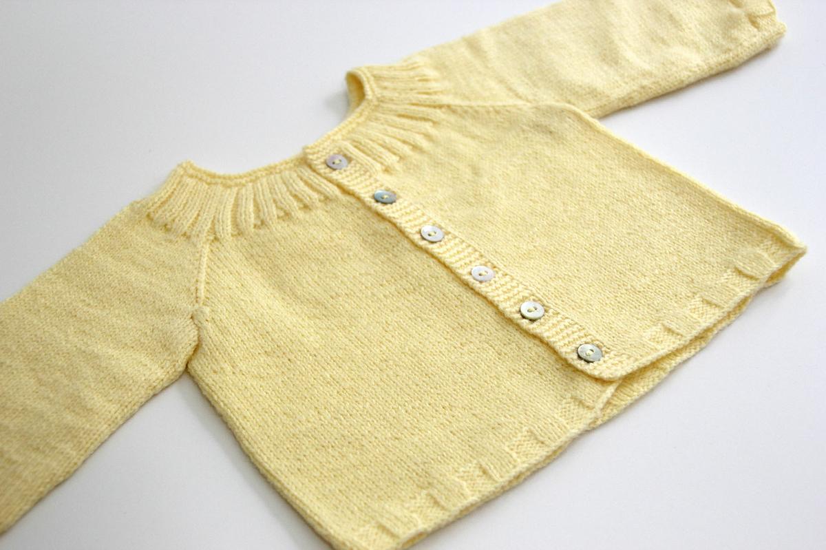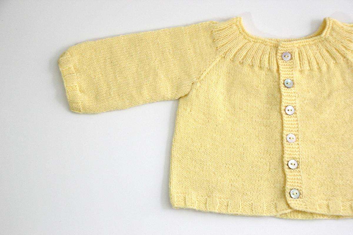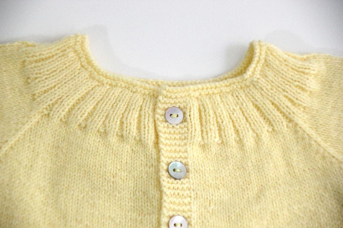 Este jersey tan bonito se lo hice a Jorge a finales de verano, cuando aún no sabía si sería niña o niño ya comencé a tejer en amarillo, que es un color unisex. Quería desde hace mucho tiempo un jersey con esta forma, en patente por la parte del cuello, y la verdad que el patrón no lo he encontrado en ningún sitio, así que me lo he ido inventado.