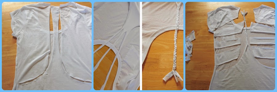 Fotos de pinterestMi camiseta era básica de manga corta así que lo primero que hice fue cortarle las mangas. Después trencé tanto el tirante delantero como el trasero. Uní las dos partes, y como en el trasero de la prenda hice tres trenzas, les añadí unos abalorios para tapar la costura.