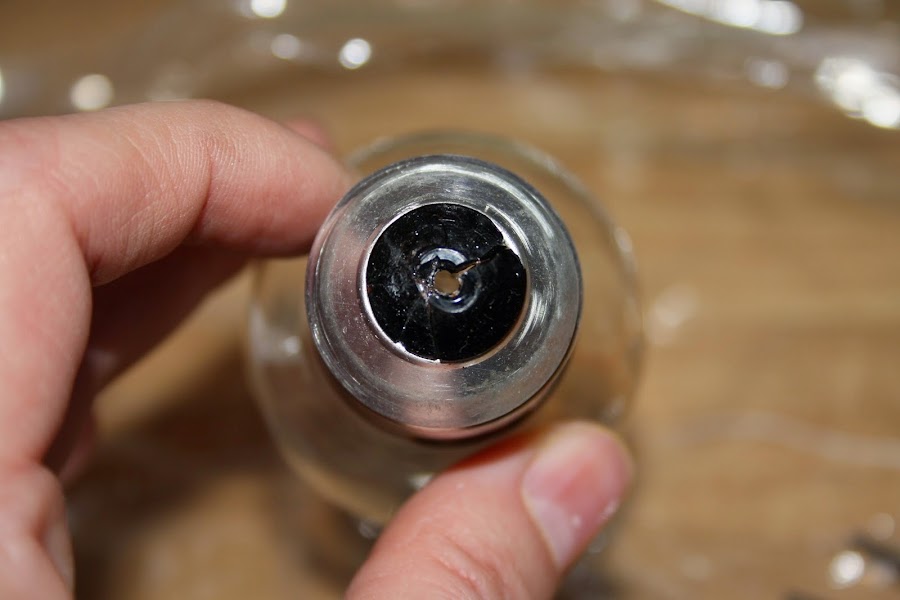 Ahora solo nos queda introducir el tenedor dentro y agitar fuerte hasta que rompamos el interior de cristal. Aquí quizá tengáis que insistir un poco pero al final se consigue. Después vaciaremos el contenido con cuidado y ya tenemos lista nuestra bombilla para reciclar.